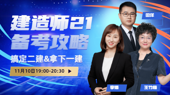 2020年一建/二建考試已落下帷幕,2021年備考的號角已經(jīng)吹響。如何規(guī)劃備考之路?今年政策是否有變化?帶著同學們的疑惑,鎖定11月10日晚19點,王竹梅、李娜老師與同學們暢聊起來!