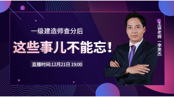 2020一級建造師成績公布啦!同學(xué)們忙于查分之余千萬不能忽略查分后的這些事情。12月21日晚19:00,李英杰老師為同學(xué)們細(xì)數(shù)查分后應(yīng)注意的事項,一定要記得!