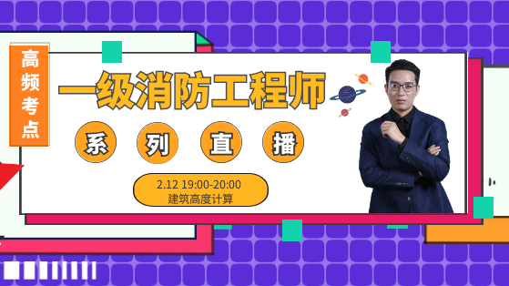 2020年一級消防工程師高頻考點系列免費直播課,暫定有3期,2月12日開始每周三晚上19點,由靳嘯天老師為大家主講,全面深入剖析知識點,夯實基礎(chǔ),每天1小時,消防備考不再難。