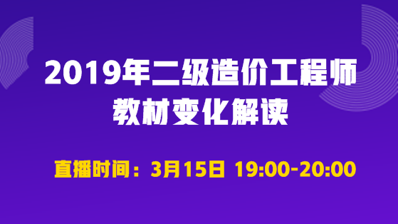 為了更好有針對性的幫助備考2019年二級造價師考試的學(xué)員們復(fù)習(xí),斬獲高分!建設(shè)工程教育網(wǎng)的帥哥老師將在3月15日晚上19:00-20:00免費直播一場關(guān)于2019年二級造價工程師教材變化的解讀課程呦!