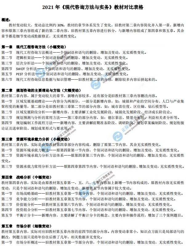 【建議收藏】2021年咨詢工程師教材變動對比