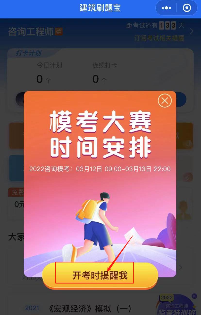 4.點擊開考時提醒我,即可成功預(yù)約。開始時會通過微信消息提醒大家。