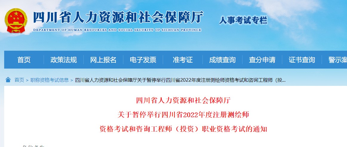 關(guān)于暫停舉行四川省2022年度注冊測繪師