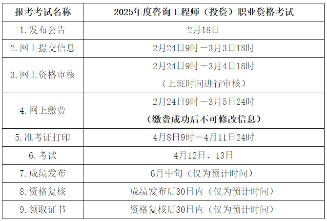關(guān)于2025年度咨詢工程師(投資)職業(yè)資格考試報(bào)名安排的通知