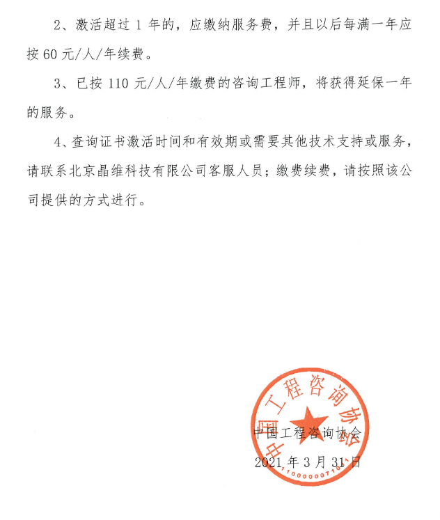 中國(guó)工程咨詢協(xié)會(huì)關(guān)于咨詢工程師電子證書及簽章服務(wù)費(fèi)事宜的通知