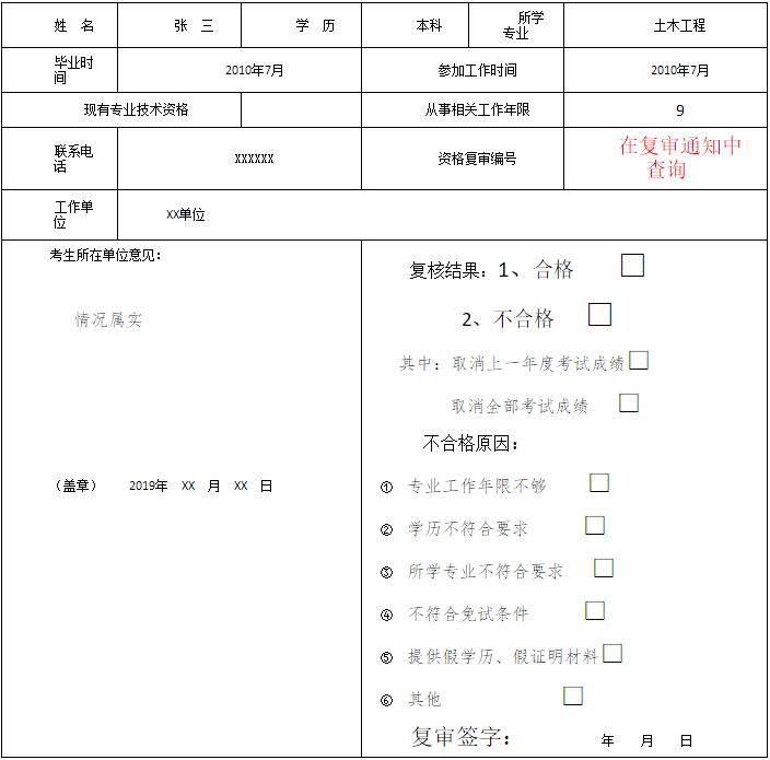 4、復(fù)審人員按照樣表填寫自己的實(shí)際情況。