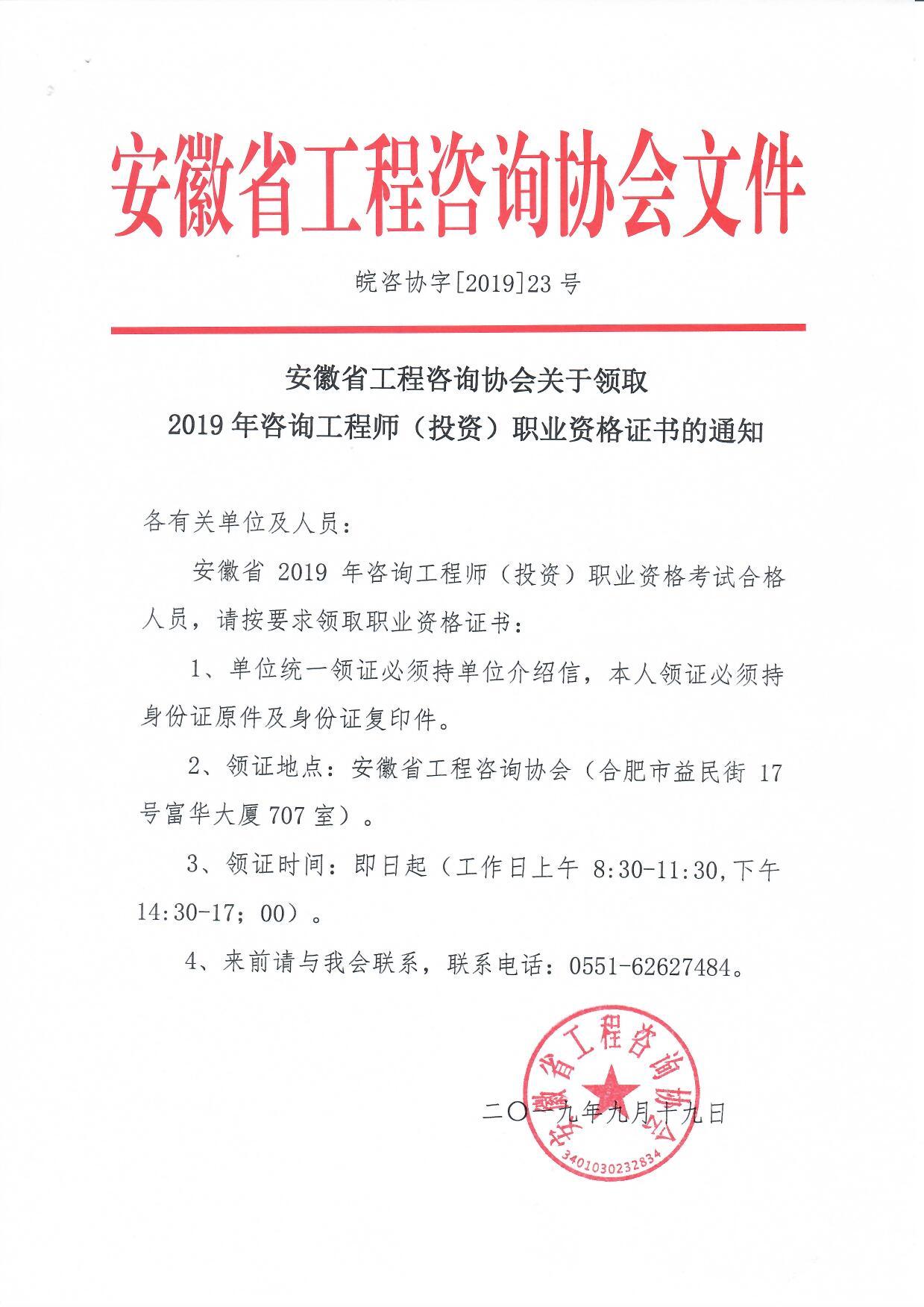 安徽省2019年咨詢工程師證書領(lǐng)取、發(fā)放通知