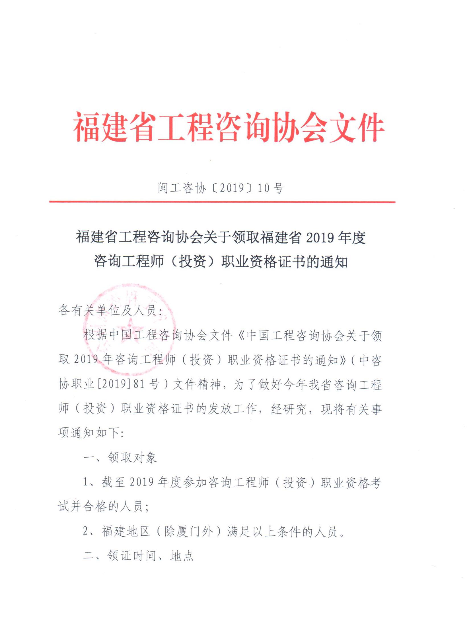 原文鏈接:福建省工程咨詢協(xié)會關(guān)于領(lǐng)取福建省2019年度工程師(投資)職業(yè)資格證書的通知