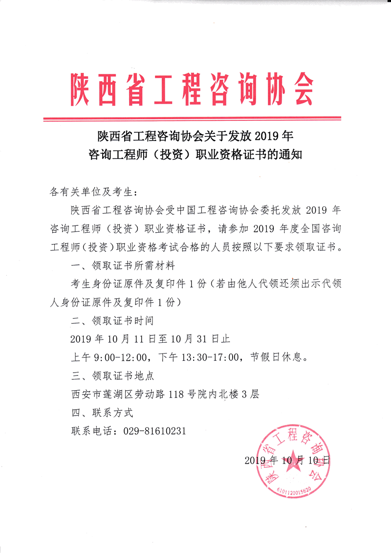 陜西省2019年咨詢工程師考試合格證書發(fā)放通知