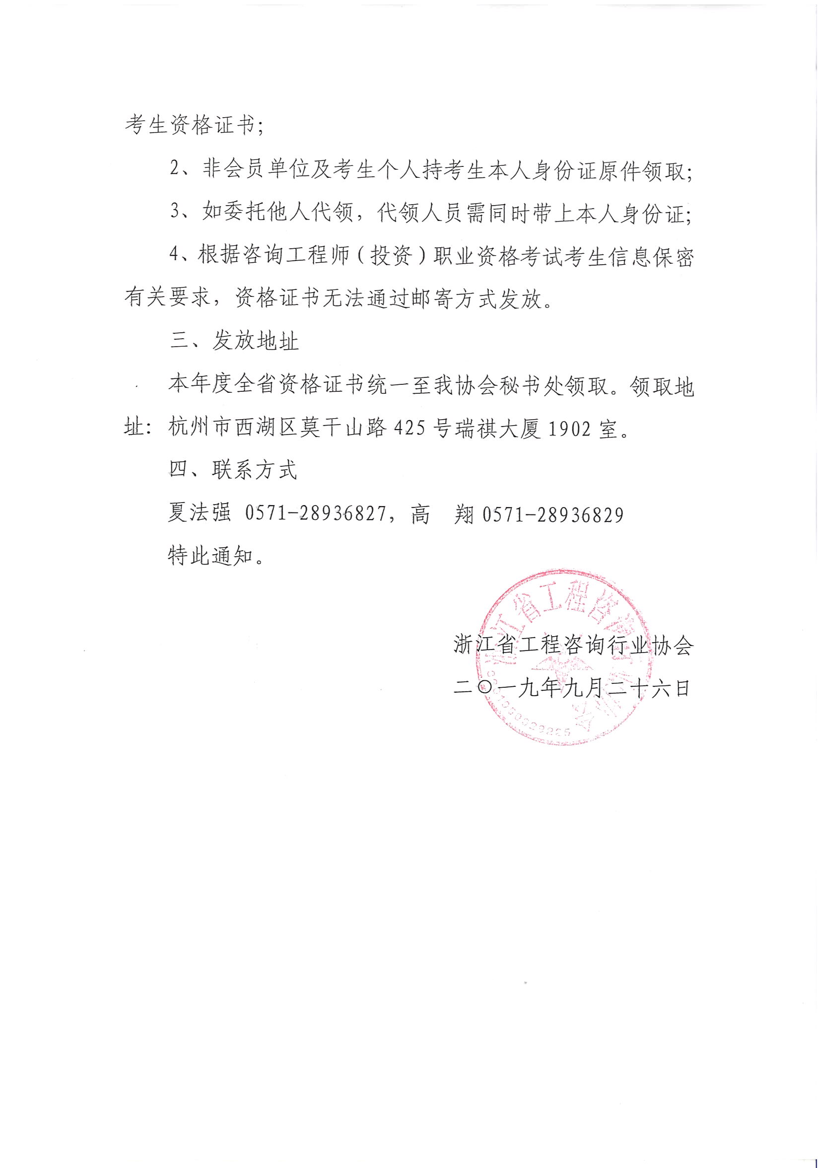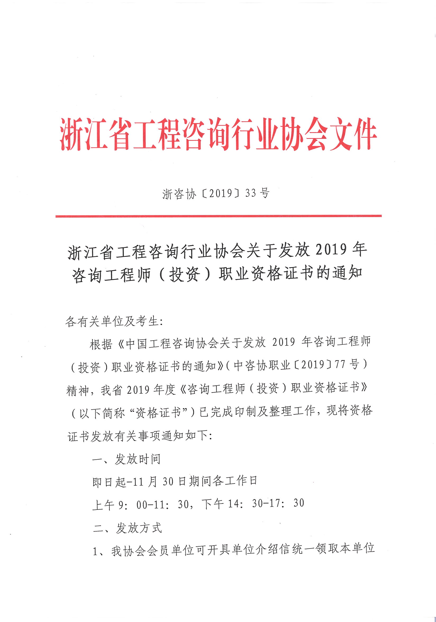 浙江省開始發(fā)放領取2019年咨詢工程師考試合格證書
