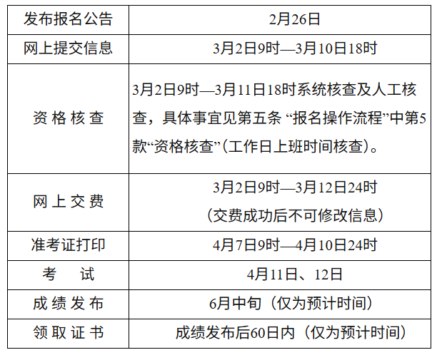 | 準(zhǔn)考證打印 | 4月7日9時(shí)—4月10日24時(shí) |