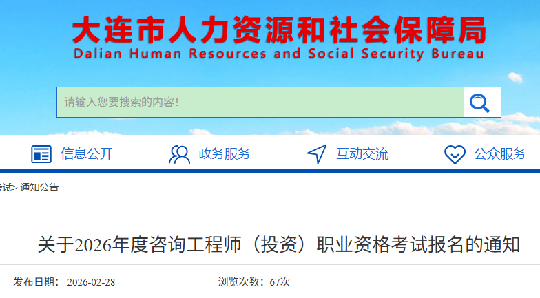 大連市人力資源和社會保障局發(fā)布關于2026年度咨詢工程師(投資)職業(yè)資格考試報名的通知,具體信息如下: