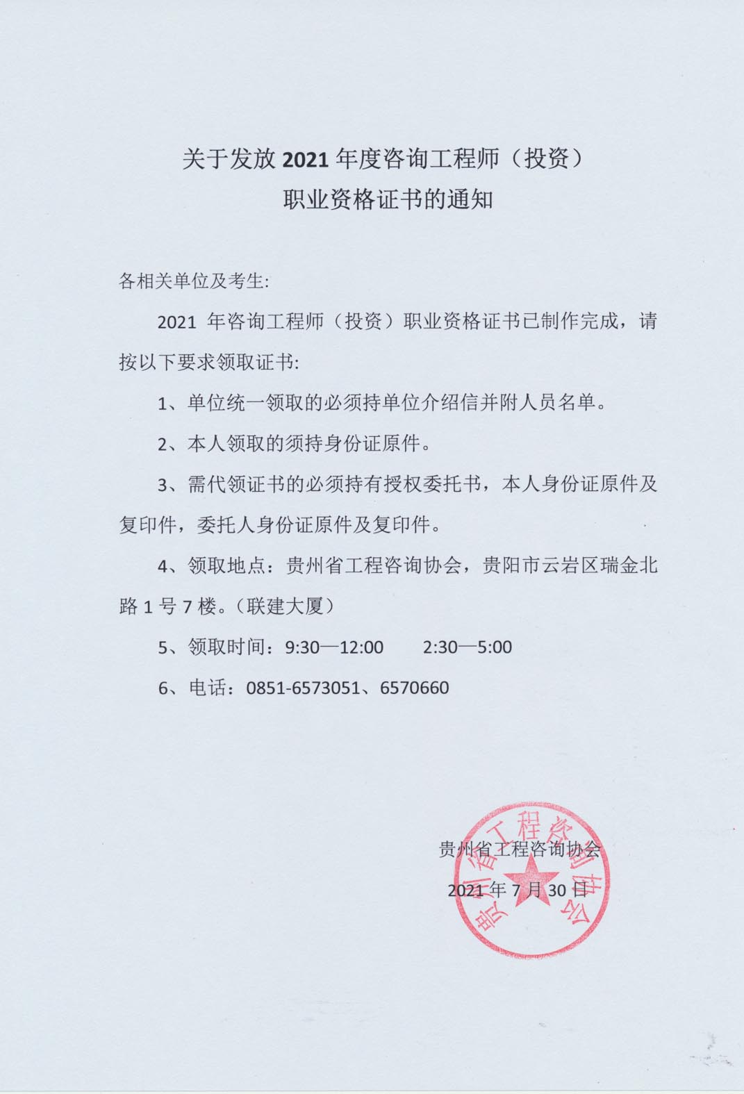 2021年度貴州發(fā)放咨詢工程師(投資)職業(yè)資格證書的通知