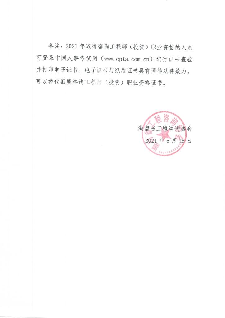 2021年湖南省發(fā)放咨詢工程師(投資)職業(yè)資格證書的通知