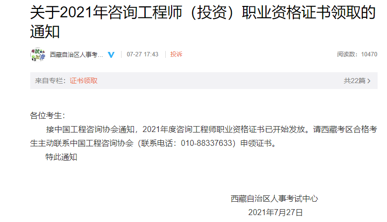 西藏2021年咨詢工程師職業(yè)資格證書領(lǐng)取