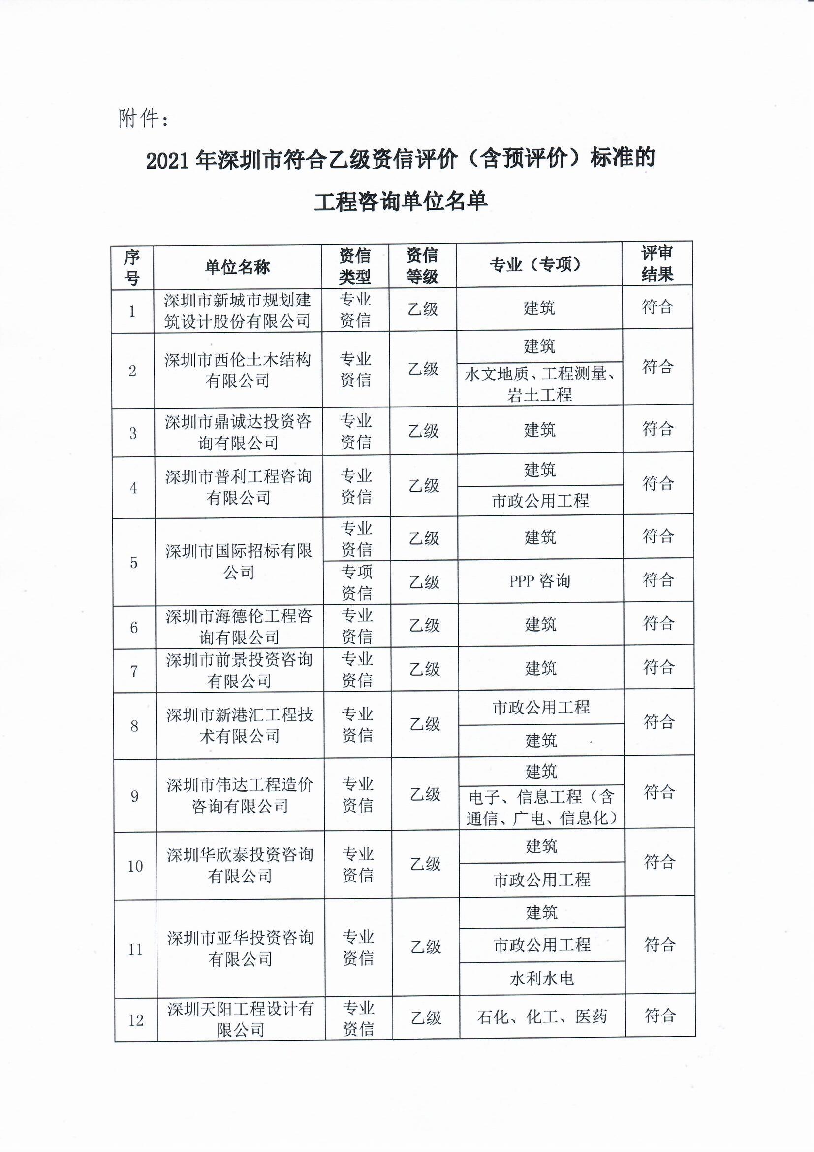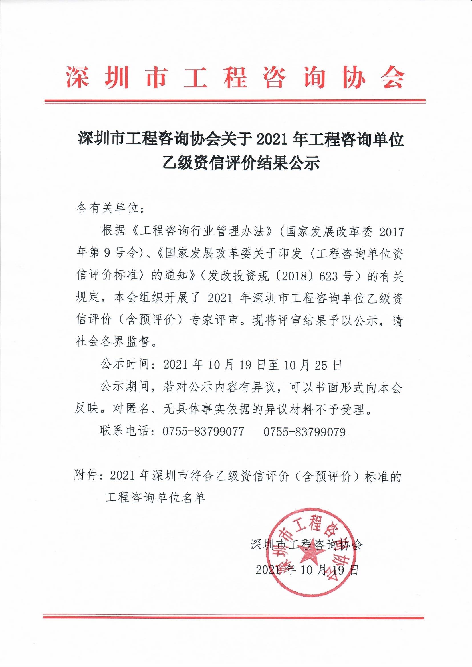 深圳市工程咨詢協(xié)會(huì)關(guān)于2021年工程咨詢單位乙級(jí)資信評(píng)價(jià)結(jié)果公示