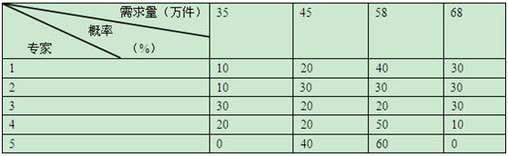 某組織5位專家進(jìn)行產(chǎn)品需求量預(yù)測(cè),預(yù)測(cè)數(shù)據(jù)見下表。則需求量預(yù)測(cè)的期望值是()萬(wàn)件。(2013年試題)