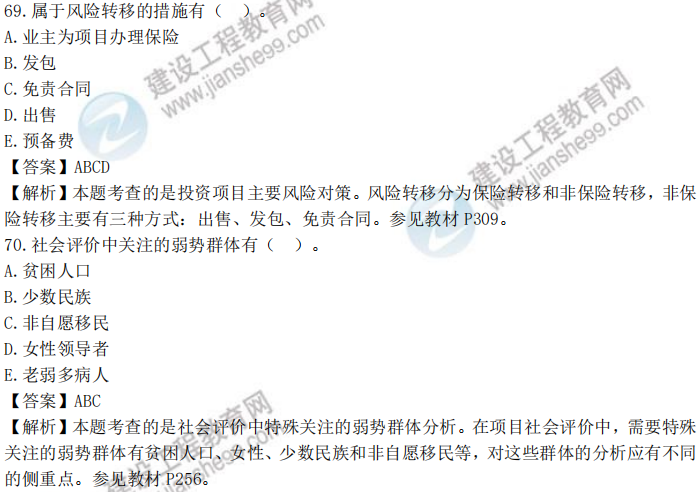 2021年咨詢工程師項目決策分析與評價試題答案及解析61-70