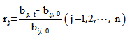 假定區(qū)域在經(jīng)歷了時(shí)間[0,t]之后,經(jīng)濟(jì)總量和結(jié)構(gòu)都發(fā)生了變化。將區(qū)域i劃分為n個(gè)產(chǎn)業(yè)部門,分別bij,0,bij,t(i=1,2,…,n)表示區(qū)域i第j個(gè)產(chǎn)業(yè)在初期與末期的經(jīng)濟(jì)規(guī)模。